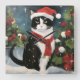 Reloj Cuadrado Gato de Tuxedo en Navidades de nieve