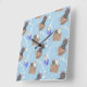 Reloj Cuadrado Gatos en caja y gotas de leche en azul