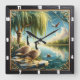 Reloj Cuadrado Geese y Ducks arrastran río Rústico Geese