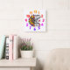 Un hermoso y moderno y elegante arco iris colorido y girasol de impresión leopardo con mariposas y corazones vida levantando citas motivacionales en reloj blanco. Es un hermoso y lindo regalo único para ella que ama las flores coloridas con citas motivacionales. Perfecto para el cumpleaños, el día de la madre o regalo de aniversario y más. Puede cambiar las horas de reloj y la imagen de números.