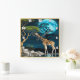 Reloj Cuadrado Giraffe a orillas del lago bajo una noche de luna