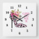 The Girly Pink Floral and High Heels Square Wall Clock brings a stylish, feminine flair to any room with its blend of soft pink hues and chic high-heel accents. Delicate floral illustrations frame the clock face, creating a charming balance of elegance and playful fashion. The bold high-heels graphic adds a trendy touch perfect for bedrooms, dressing rooms, or glam-themed spaces. Its square shape gives it a modern look that stands out beautifully on the wall. Clear, easy-to-read numbers make it both decorative and functional. Crafted with quality materials, it keeps accurate time while enhancing your décor. This clock is the perfect statement piece for anyone who loves fashion, florals, and all things girly.