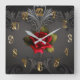 Reloj Cuadrado Glamor Gótico Rosa Roja Negra Ornamental Glam