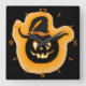 Reloj Cuadrado Glowing Pumpkin Witch On Black Square Wall Clock