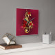 Clef dorado del trébol, decorado con rosas rojas y hojas de oro sobre fondo texturado.