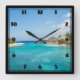 Reloj Cuadrado Gorgeous Blue Tropical Beach with Thatched Huts