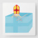 Gracioso lindo San Nicolás Holandés Sinterklaas escondido en una caja de regalo, niños Art St. Nick's Day Wall Clock