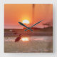 Reloj Cuadrado Gran alimentación de garza al atardecer