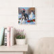 Reloj Cuadrado Gran danés corriendo en nieve con Gorra Navidad
