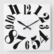 Este divertido reloj de pared blanco y negro se verá bien casi en cualquier parte. El diseño peculiar de los números en diferentes tamaños y ángulos le da un toque de placer visual, y las grandes cantidades hacen que sea fácil leer el tiempo. Números negros en un fondo blanco. Manos negras. Las manos grises están disponibles: sólo tiene que elegir en la sección de personalización antes de realizar su pedido.