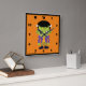 A clock with a fun Halloween image featuring a green Frankenstein monster.