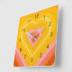 Diseño de ráfagas de corazón retro. Capas de corazón en naranja, amarillo, rosa. Regalos de corazón retro y groovy, decoración casera.
