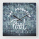 Reloj Cuadrado Guay Blue Tile Piscina Familia Nombre Personalizad