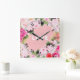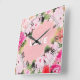 Reloj Cuadrado Guión de Amor del Jardín de Rosas Rosadas Acuarela