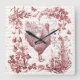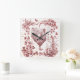 Reloj Cuadrado Guión floral anticuado de gallo rojo de gallo
