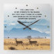 Inspiradora cita el reloj de pared de las escrituras muestra una fotografía de la naturaleza que incluye ciervos en un campo rodeado de montañas en el fondo. Presenta una Biblia motivadora Verse Habakkuk 3:19, "El Dios SEÑOR es mi FUERZA; me hace los pies como los de un ciervo y me permite caminar sobre ALTURAS MONTAÑAS".