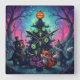 Celebra la temporada con un giro inesperado. Mezclando la fantasía de Halloween con la alegría de Navidad, con un árbol decorado con una brillante linterna de jack-o' y adornado con ojos, gusanos y velas. Se reúnen alrededor cuatro extravagantes animales del bosque, un oso con alas de murciélago y un gorra de cráneo, un cuervo en un sombrero superior y dos zorros, que comparten regalos bajo un cielo estrellado y encantado. Perfecto para los amantes de la fantasía, la decoración gótica y las mashups de vacaciones, este diseño aporta un misterio juguetón y una calidez mágica a cualquier espacio festivo.