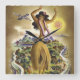 Un hermoso reloj de pared vintage con un afiche de viaje de United Air Lines de una mujer hawaiana bailando hula.