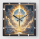 This incredibly moving and symbolic design captures the powerful theme of Heaven's Gate—the glorious promise of eternal peace and the path to redemption. The artwork, featured on a square wall clock, displays a breathtaking scene: a brilliant, luminous golden cross ascending from a reflection of light, framed by a heart-shaped opening in radiant, sun-drenched clouds. The intense vertical shaft of light emanating from the cross illuminates a glowing path below, symbolizing the gateway to glory. The comforting message of this eternal hope is quoted from Revelation 21:4: "He will wipe every tear from their eyes." This profound image offers deep comfort and inspiration. The highest quality print and artwork used on the surface is so exceptional it creates a stunningly realistic tactile illusion; you could easily mistake the textures for genuine This impressive, high-quality timepiece is a spectacular dedication to faith, honoring the spiritual journey.