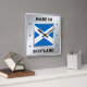 Un diseño con un falso cuadrado plateado, diseñado para que parezca que el interior ha sido aclamado. En el centro de la plaza se encuentra la bandera escocesa. Alrededor de la plaza está el texto "Hecho en Escocia" junto con 6 estrellas decorativas.