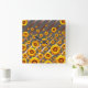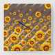 Reloj Cuadrado Hermosas flores amarillas en rayas grises y marron