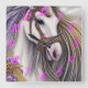 Hermoso caballo blanco con morado y oro, halter y flores reloj de pared - por todo caballo y ponis