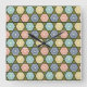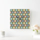 Este reloj de pared tiene un diseño moderno de mediados de siglo de hexágonos concéntricos en colores y triángulos retro.