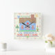 Decore su pared con un reloj cuadrado personalizado de casa de campo. Este diseño de reloj se hace como un muestreador vintage de bordado cruzado. Muestra una casa azul hecha de "x" con un pájaro, el sol y muchos corazones y flores en el mismo estilo. El fondo es de color beige, con un ligero patrón de comprobación que parece un material de bordado. Los números de reloj también se realizan en un estilo de punto de inflexión. Para personalizar, simplemente escriba su nombre en el campo de plantilla. El reloj dirá: "[El nombre] Hogar dulce". Este reloj de bonito tiene un ambiente rústico y es perfecto para un regalo de bienvenida.