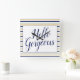 Rellene su casa con nuestro Reloj de pared cuadrado a rayas y con el que le ofrecemos nuestro Hola. Este encantador reloj combina con elegancia rayas de color blanco, dorado y marina, junto con el mensaje "Hello Gorgeous". Perfecto para cualquier habitación, este reloj no sólo te mantiene a tiempo sino que también le da un toque de elegancia y motivación a tu decoración.