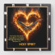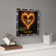 This incredibly moving and symbolic design captures the theme of Fire Within—the divine presence and enduring power of faith. The artwork, which appears on a square wall clock, features a powerful heart shape outlined in intense orange and red flames on a deep black background. At the center is a graceful white dove in flight, representing the Holy Spirit. The design beautifully combines elements of passionate faith and spiritual love, clearly stating the powerful message from Romans 5:5: "God's love has been poured into our hearts through the Holy Spirit." The highest quality print and artwork used on the surface is so exceptional it creates a stunningly realistic tactile illusion; you could easily mistake the textures for genuine embossed metal or heavy, worn leather. This piece is a spectacular dedication to faith and the love of God. this impressive, high-quality piece is a perfect gift for any devoted person, honoring their spiritual journey.