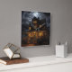 "Horizontes atormentados" captura la esencia de una noche escalofriante de Halloween como una misteriosa y espeluznante casa embrujada que se asoma en primer plano, envuelta en el eterno resplandor de una luna llena. Este arte mural te transporta a un reino de encantamiento espeluznante, donde casi puedes escuchar los cuentos susurrados de espíritus inquietos y sentir la presencia inquietante en el aire.