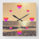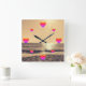 A square clock bathed in sunset hues, where each hour is marked by a heart. Time flows gently, wrapped in romance and serenity.