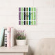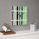 Patrón geométrico lineal, rectangular, rayado de tonos negros, púrpura y verde.
