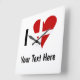 Reloj Cuadrado I (Funky Heart Shaped Danish Flag) Su Texto