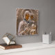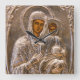 Jesucristo y su madre María sobre el viejo ícono ruso. Aspecto plateado. Fotografía.