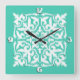 Reloj Cuadrado Ikat damask pattern - peacock blue and white