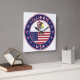 Marca de Illinois con bandera de Illinois y bandera de los colores de EEUU, forma redondeada. Emblema de Illinois. Sello de Illinois. Colección de Estados Unidos.