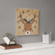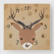 Reloj Cuadrado ilustracion de renos sobre fondo marrón