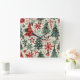 Reloj Cuadrado Impasto al Collage de Motifs de Navidades Rojos y