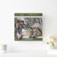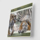 Hermoso arte digital con dos tigres con un efecto 3D que parece estar saltando del marco de la imagen. El fondo está cubierto de jirafa y cebra. El maravilloso arte animal salvaje es una idea maravillosa para los amantes de la vida salvaje.