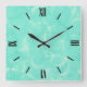 Reloj Cuadrado Impresión de mármol del remolino - aguamarina azul