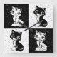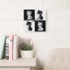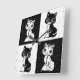 Reloj Cuadrado Impresión de monograma de gato blanco negro