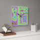 Reloj Cuadrado Impresión étnica de decoración floral morado verde