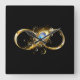 Reloj Cuadrado Infinito con la pluma de pavo real dorado