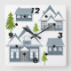Invierno inmaculado Feliz Navidad paisaje casas grises árboles verdes fondo blanco