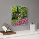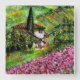 Tuscany landscape,colorful ,vibrant ,expressive beauty of Italian countryside and purple violet iris fields ,beautiful Summer flora in bright green,yellow ,brown,blue ,white colors,meadows,flower field,cypress and olive trees,rustic old farm house under the blue sky and white clouds .Acrylic painting on canvas .