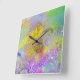 Surrealista, colorido y fantástico cuadro de medios mixtos en chispas doradas, turquesa, azul acuático, verde, verde azulado, violeta, lila, morado con Relieve metalizado dorado y plateado. El tema tiene que ver con los arquetipos y el simbolismo alquímico medieval. Se trata de una visión destilada del imaginario colectivo occidental y oriental que busca imágenes remotas desde lo profundo del misterioso jardín de las sombras perdidas.