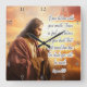 Esta cara inspiradora del reloj muestra a Jesucristo con las manos atadas en la oración, mirando hacia abajo en el fondo de un cielo cálido y luminoso. La poderosa cita de "Romanos 10:9" declara: "Si declaras con tu boca, 'Jesús es Señor', y crees en tu corazón que Dios lo levantó de los muertos, serás salvado". Los números negros marcan las horas, mezclando los principios centrales de la fe cristiana con un recordatorio diario de la salvación.