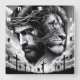 Este poderoso reloj cuadrado de pared combina artísticamente las imágenes de Jesús usando una corona de espinas y el majestuoso León de Judá. Debajo de ellos, siluetas de cruces se alzan contra un cielo nublado, creando un profundo símbolo de fe, sacrificio y redención. Este sorprendente artículo sirve como un significativo acento religioso para cualquier espacio.