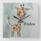 Reloj Cuadrado Jirafa Acuarela Dibujada a Mano Nombre